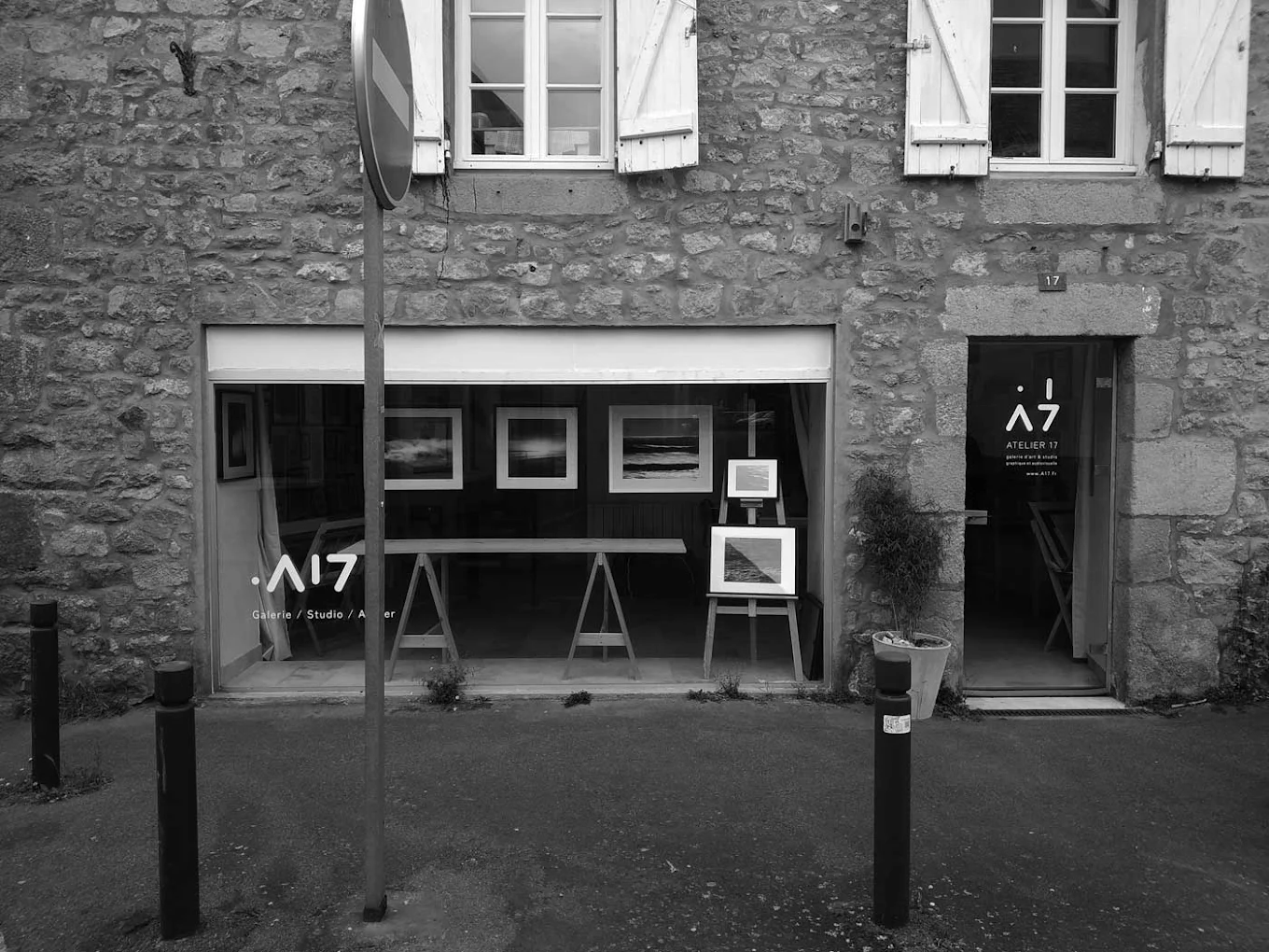 La galerie-atelier A17, Carnac, était un projet collectif mené avec Nino Jonas. L’idée était de créer un atelier de travail ouvert, afin de pouvoir y réaliser des activités de photographie, de montage vidéo, de design et de peinture. L’atelier servait également d’espace d’exposition pour nos travaux.