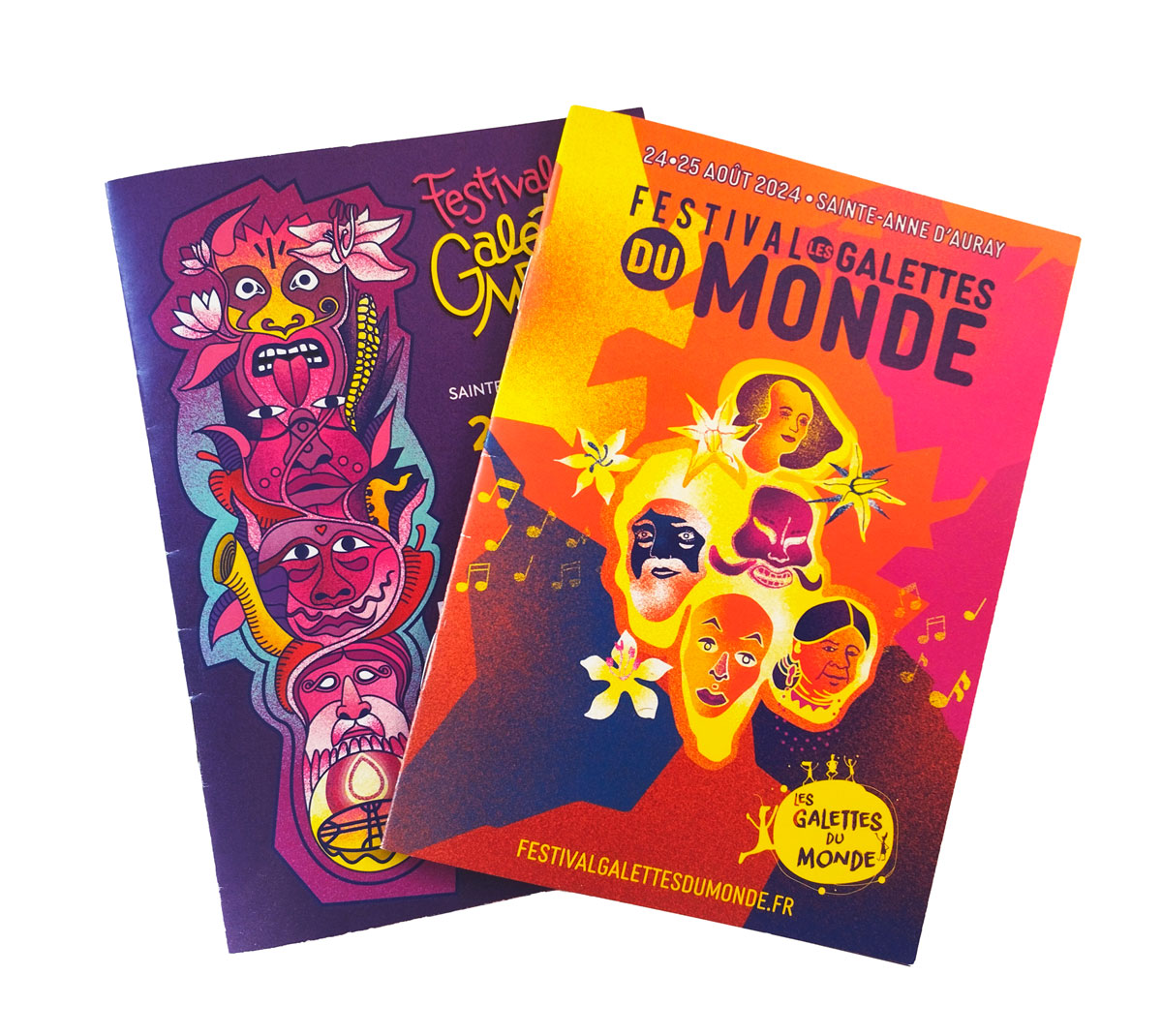 Dans le cadre de mon travail au sein de l'agence Printshopcrea, j'ai été chargé de la création de l'ensemble du matériel visuel lié au Festival Galettes du Monde. Cela comprenait la conception des éléments visuels présents tout au long du festival, permettant d'orienter et d'informer le public, ainsi que la création de la brochure du festival et des affiches pour les deux éditions de l'événement.